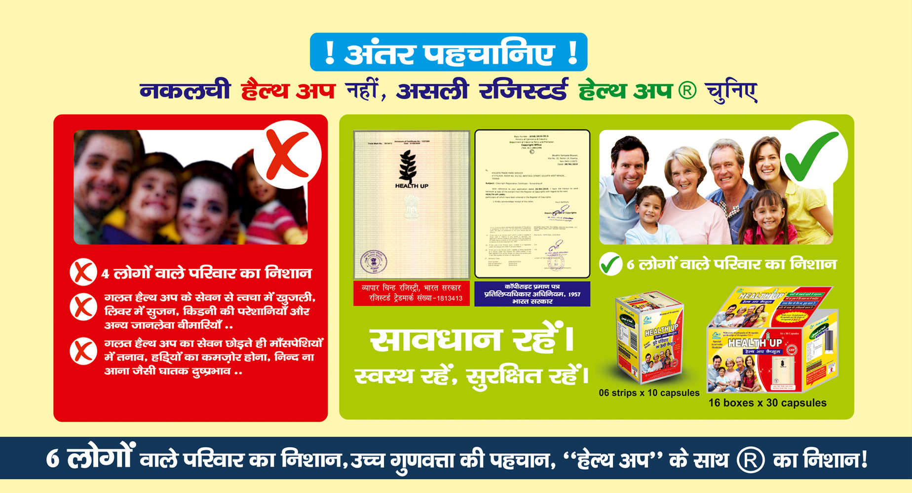 While purchasing Health Up® Capsules, always make sure that you buy Health Up® only with Registered Trademark (® denotes Registered Trademark Product in the Trademark Authority of India)