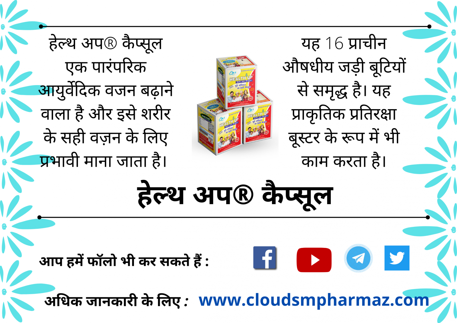 हेल्थ अप® कैप्सूल केवल वज़न बढ़ाने वाला नहीं है, बल्कि यह शुद्ध रूप से आयुर्वेदिक उत्पाद भी है। आयुर्वेद पृथ्वी…